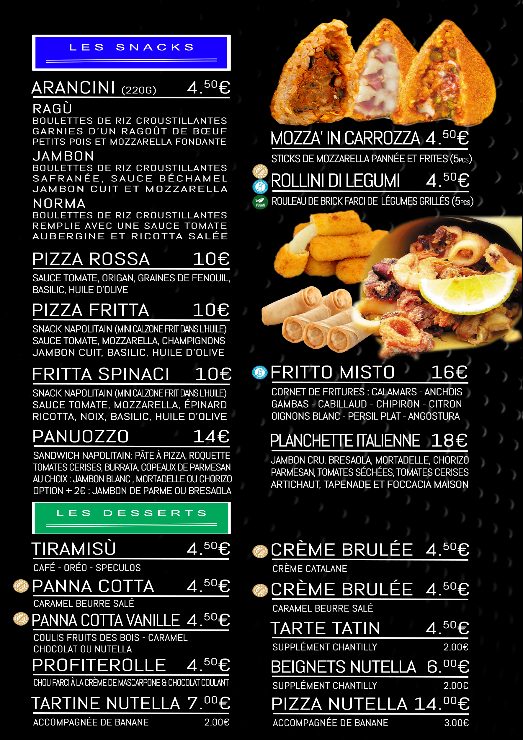 La carte proposée par notre chef
